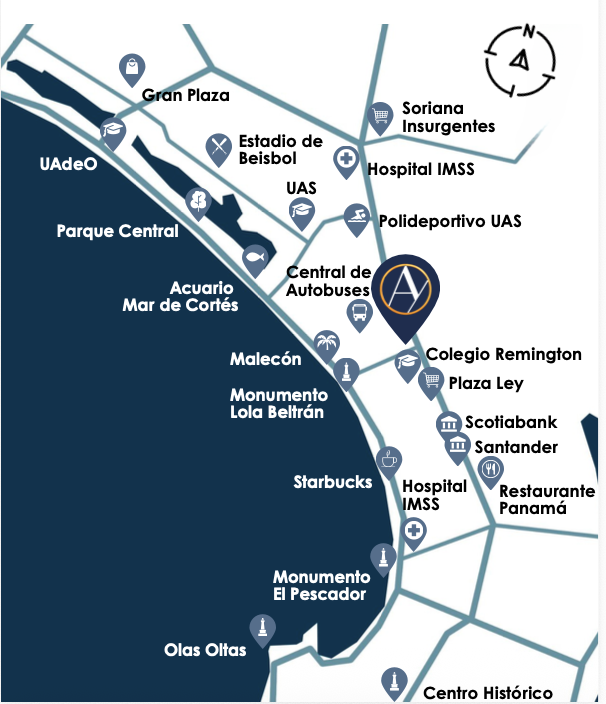 Situado en el corazón de Mazatlán, Aitana Condos te ofrece una ubicación estratégica inigualable. A escasas cuadras del malecón, este proyecto se erige como un punto de conexión entre el viejo y nuevo Mazatlán, ofreciendo a sus residentes y visitantes una experiencia única.